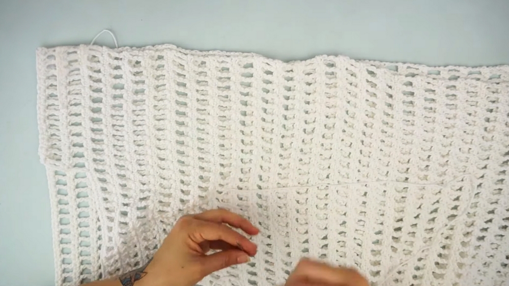 - Attach the shoulder panels by sewing the inside strands of the stitches together using the leftover yarn.