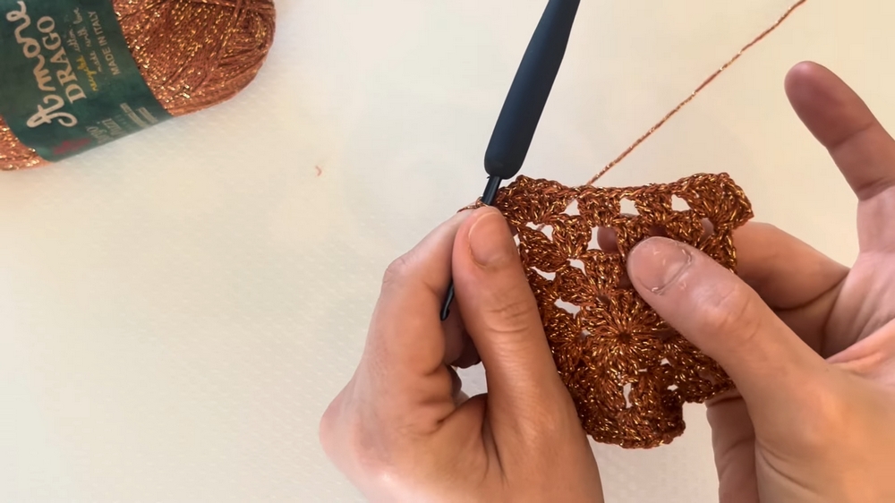 This particular crochet cardigan stands out with its thoughtful construction and delicate details. It begins with a hexagonal tile, which forms the base of the design. The process starts with a magic ring, skillfully worked into six corners in the first round, setting the stage for a beautiful balance of structure and elegance.