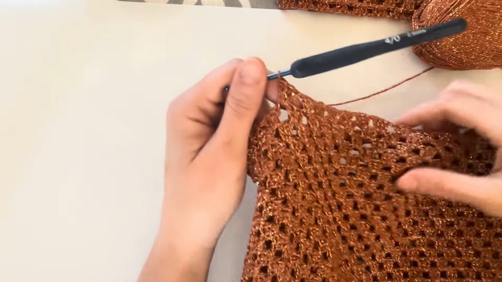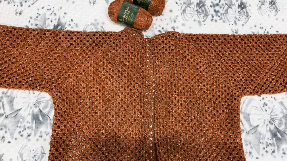 With each additional round, three double crochets and chain stitches flow together into the classic Granny stitch, creating a visual harmony of texture. The delicate spaces within the stitch ensure the cardigan remains lightweight, making it suitable for warmer days while also allowing it to serve as a cozy layer for cooler evenings.