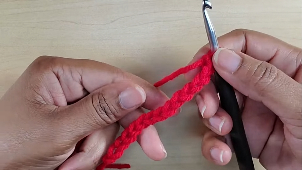 - Turn your work and make a single crochet into the second stitch from the hook. Continue single crocheting across the row, leaving you with 62 single crochets in total.