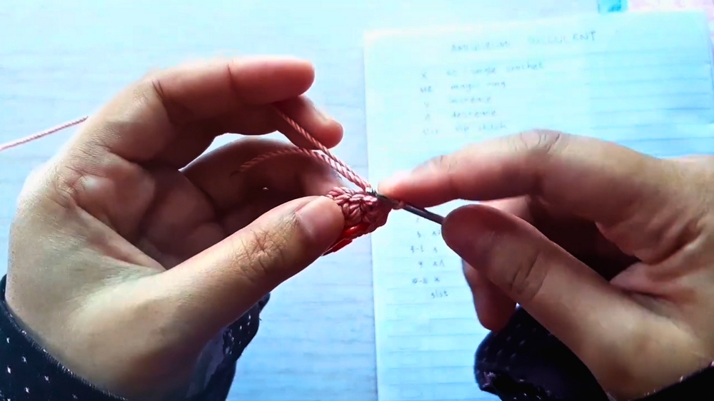 - Start by creating a Magic Ring, a fundamental crochet technique used as the base for the design.