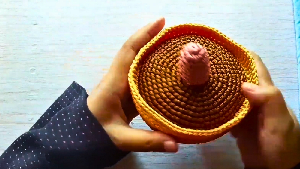 - Continue building the base by adding single crochets around until you’ve reached four to eight rows (depending on the size required).