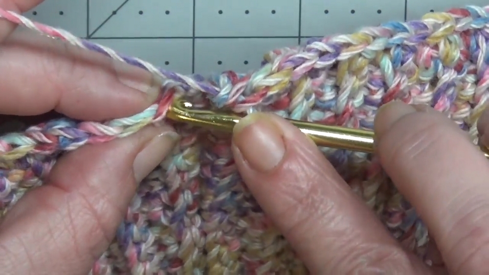 - Half double crochet into the side of each row of the band. The number of rows equals the number of half double crochet stitches around the band.