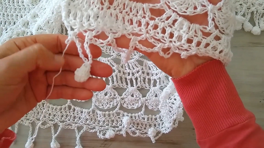 As the project nears completion, the sleeves are gracefully created by joining the edges, ensuring comfort and mobility. Additional embellishments, such as pompoms or fringes, bring a playful touch that further elevates its appeal.