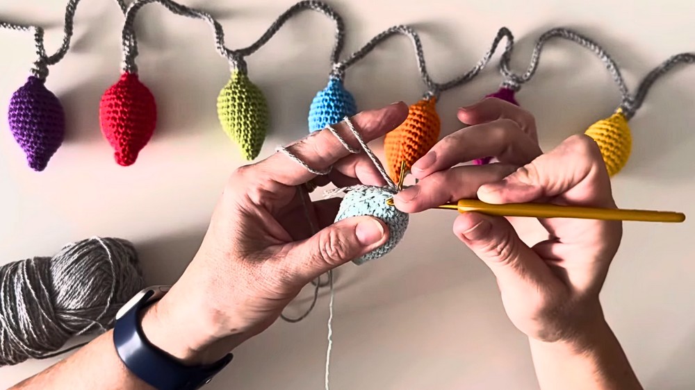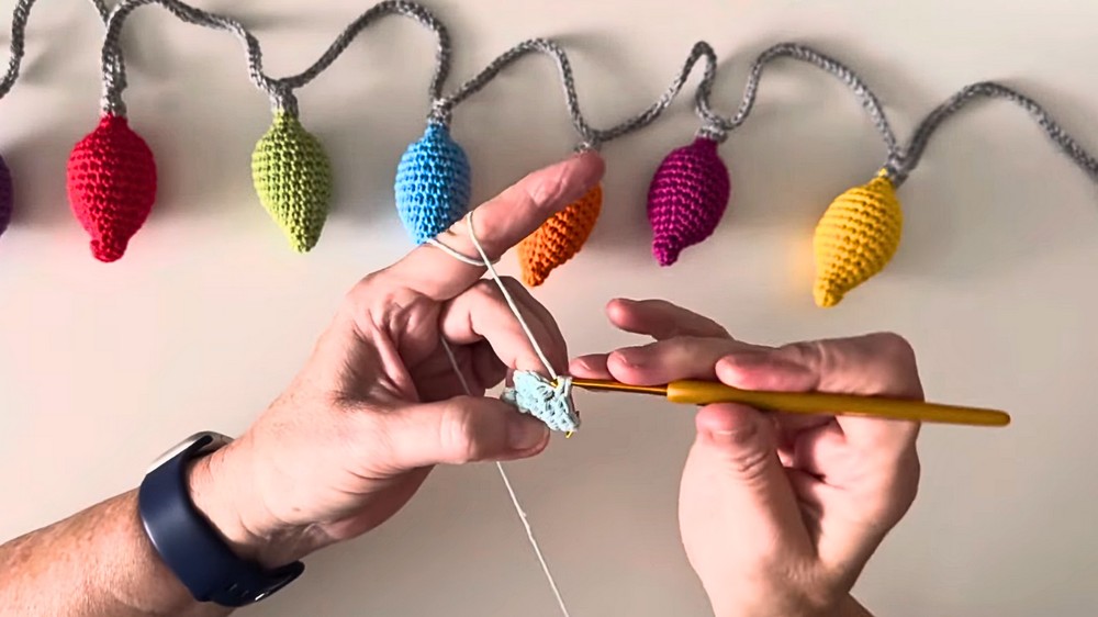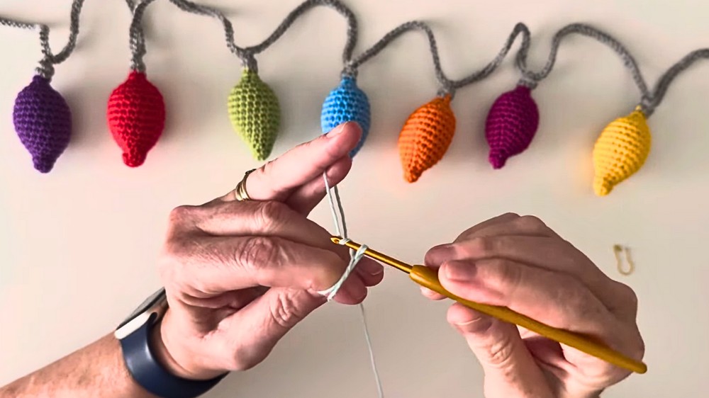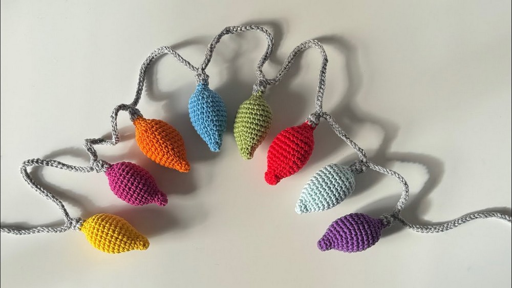 In this tutorial, the tutor demonstrates how to make a festive Christmas light garland using crochet techniques. The project features multicolored light bulbs, although you can customize the colors based on your preference (e.g., red and white, blue and white). It's an easy and quick tutorial, making it ideal for beginners and experienced crocheters alike. The finished product is perfect for holiday decor or gifting.