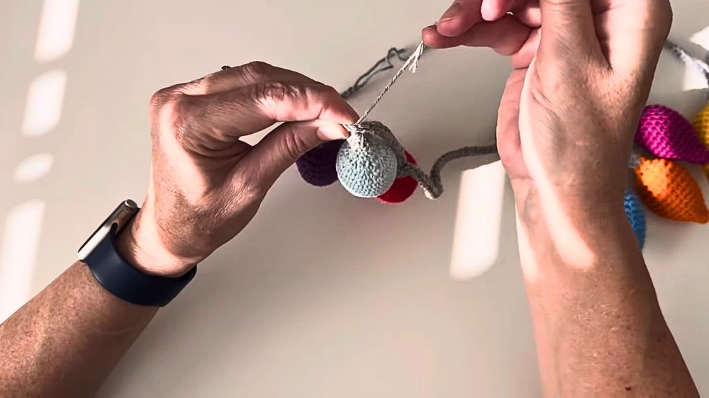 Leave both ends of your yarn easily accessible when creating the chain; this allows you to adjust the length and add bulbs as you go rather than calculating beforehand.