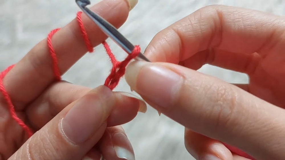 - Skip a chain and make a single crochet in the second chain.