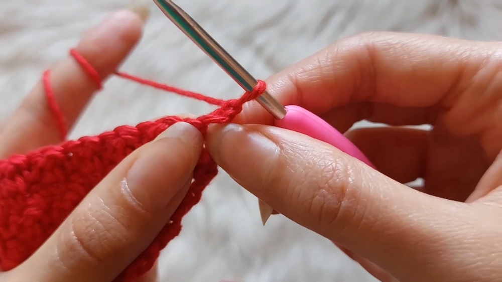 - After reaching the end of the row, make a chain, turn, and continue with a single crochet followed by a double crochet.