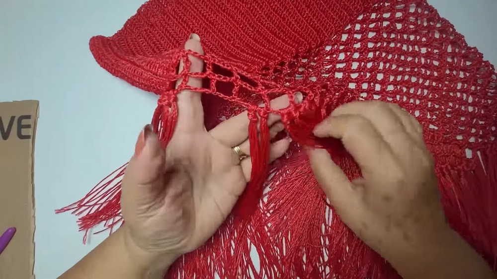 The tutorial provides a detailed on creating an adjustable cropped top with a fringe design. This crochet project is geared toward beginners and offers customizable options for various sizes. The tutor uses precise measurements and ensures step-by-step guidance throughout the process. The end result is a stylish and functional handmade item, great for personal use or gifting.