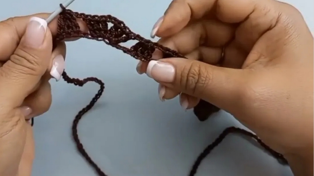 - Open diamond stitches: Work three complete stitches in the same chain space.