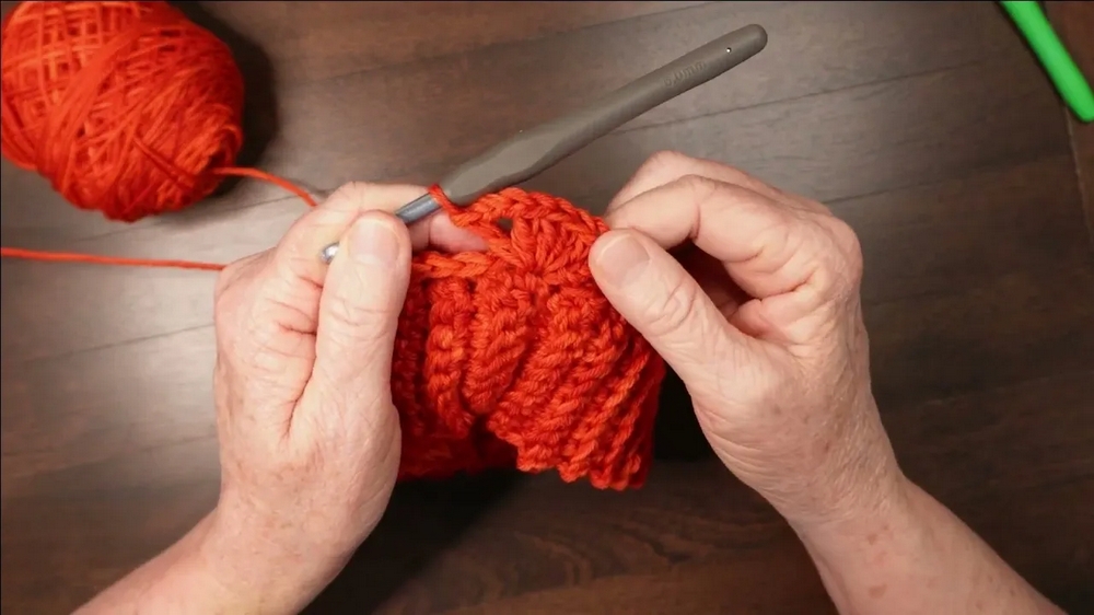- At the end of each row of the Drunken Granny Stitch, turn the hat inside out.