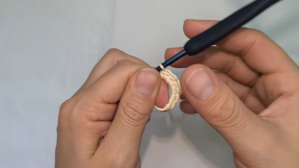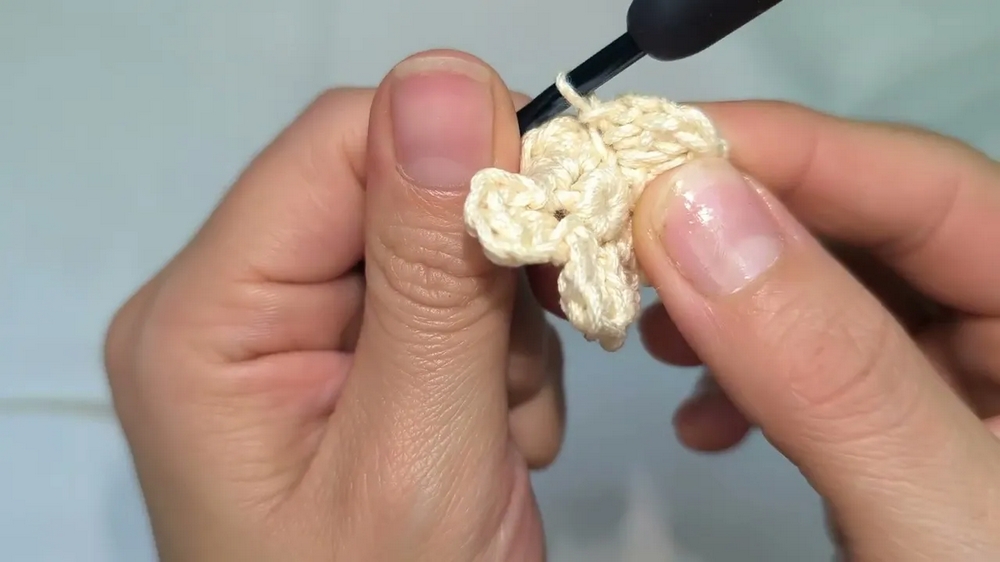 - Hold the thread with two fingers, wrap it, and form a small initial chain.