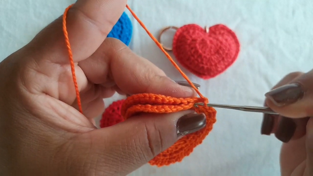 - Complete the round of slip stitches to seal the heart.