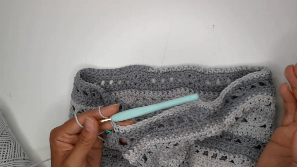 - Attach the border to the sweater body using SC, ensuring alignment between rows and body stitches.