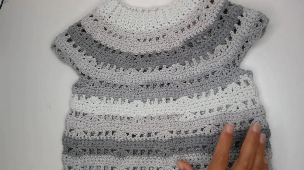 - Continue crocheting around the body only to shape the sweater’s torso.