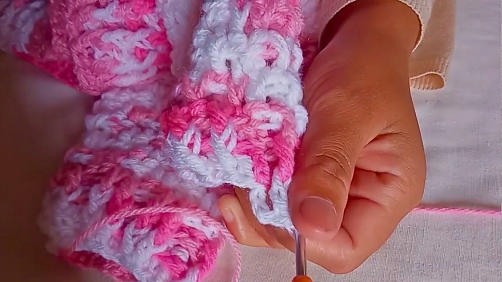 - Work 15 rounds for the sleeve before switching to the smaller hook for final edging, similar to the body border.