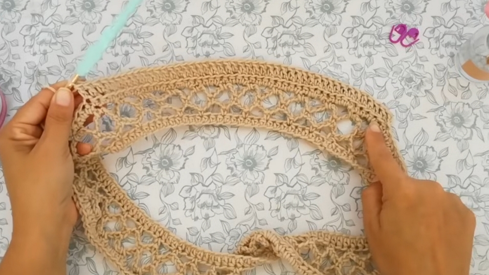 - Connect to the front with a double crochet, ensuring the circular construction is preserved.