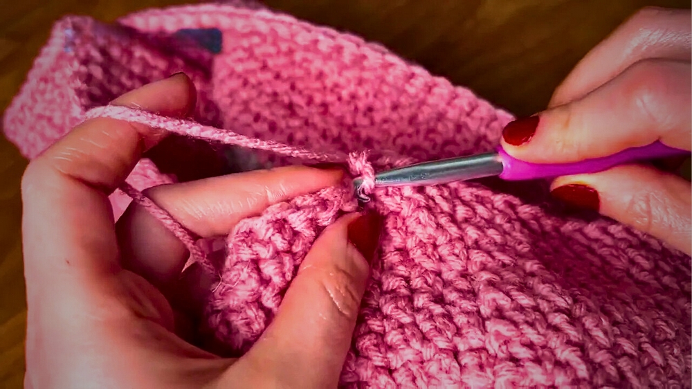 - Attach Ribbing: Slip stitch the ribbing to the end of the row and continue until fully attached.