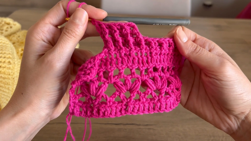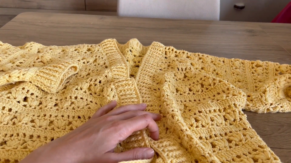 Moving through the project, strategically placed stitches like chains and shell stitches are used to incorporate texture and detail. Not only does this create visual interest, but the openwork design ensures that the cardigan remains lightweight, perfect for springtime wear.