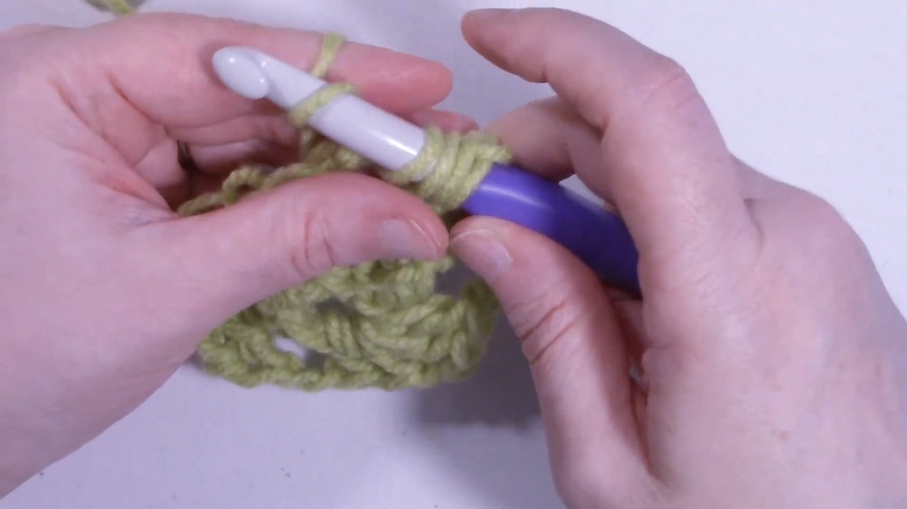 - Double crochet into each chain space, adding a chain 2 between stitches.