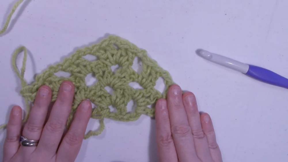 - In the center point of the triangle: Insert 2 double crochets, chain 2, another 2 double crochets to maintain the triangle's shape.