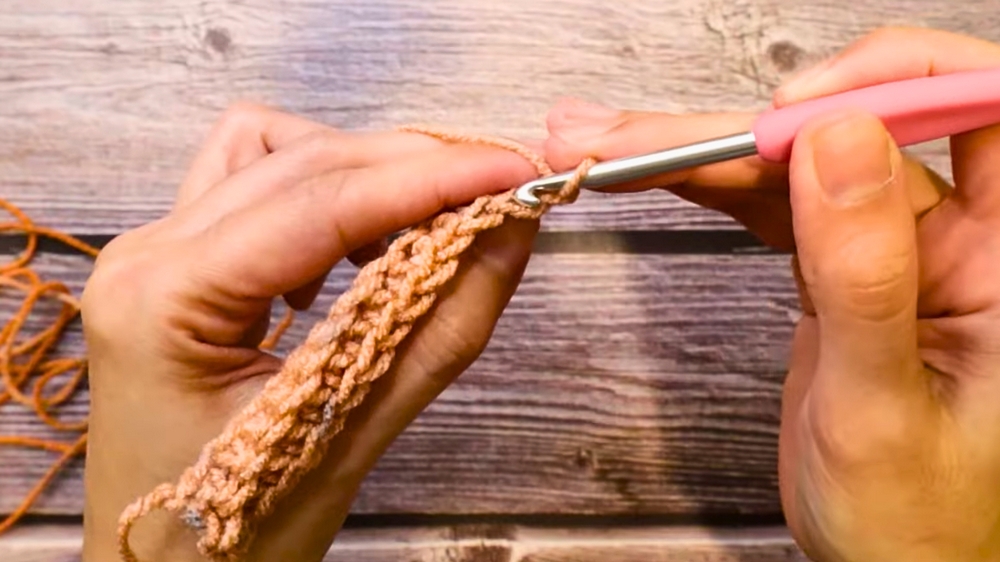 - Create a foundation row of single crochets on one side of the band.