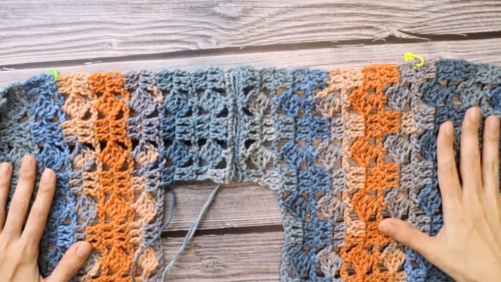 - Identify and mark the armhole on both sides of the sweater.