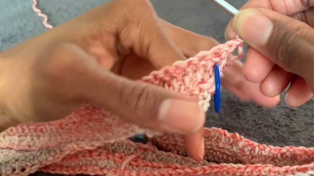 - Place two single crochets in half double crochet rows.