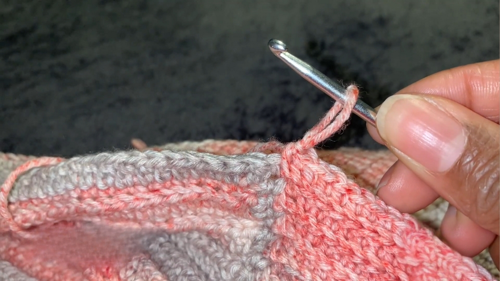 - Slip stitch (back loops only) away from the scarf edge.