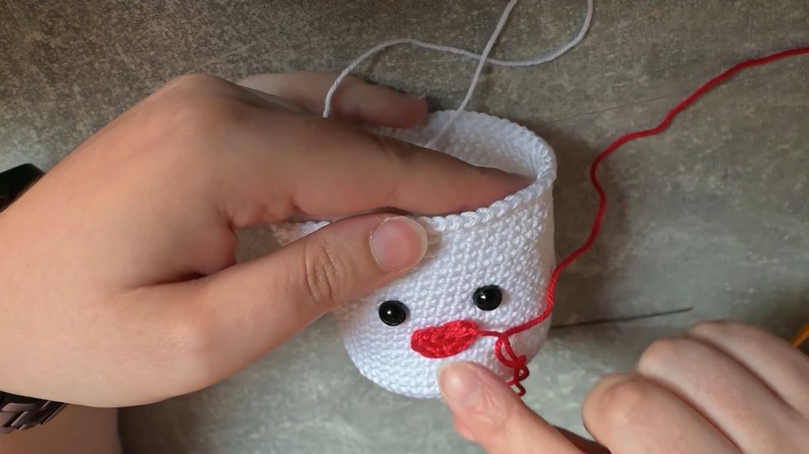 - Use white yarn to crochet or embroider one small tooth detail.