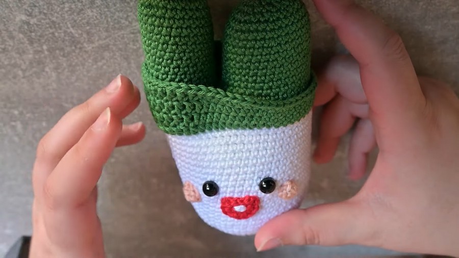 Congratulations, you've completed your crocheted green onion! With a playful appearance, charming cheeks, and vibrant stems, it's perfect for adding a whimsical touch to your space, gifting as a handmade treasure, or even using as a toy.