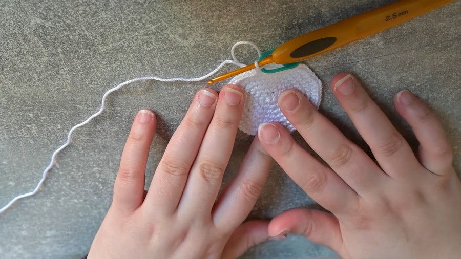 - Chain 1 and work 4 increases in inverted single crochet (if unfamiliar, watch the tutorial for guidance).