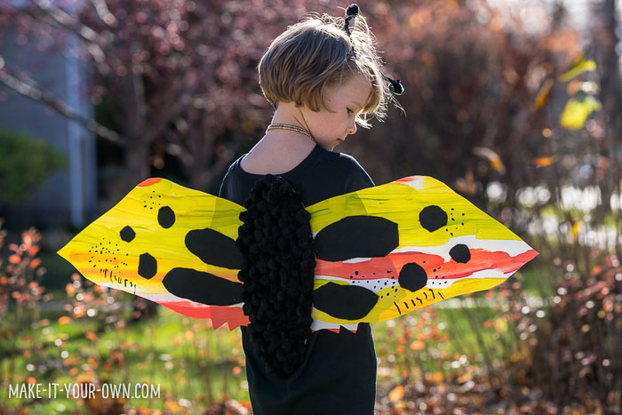 Turn your daughter into a butterfly costume with this guide. This costume uses simple materials like a paper bag, paints, felt, chenille sticks, and pom-poms to craft wings and antennae. It's easy to make, with a bit of adult assistance needed for tasks like cutting cardboard. Ideal for events or just dress-up fun, it enhances fine motor skills through painting and crafting.