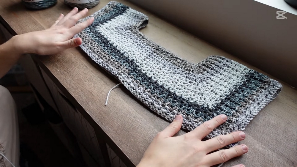 Midway through the pattern, the sleeves and the body are separated with a clever chain. This marks a pivotal moment, as crocheters can individually shape the components to suit the desired sweater dimensions.