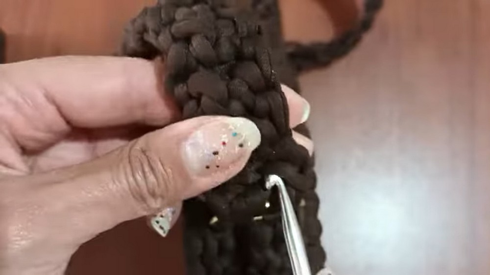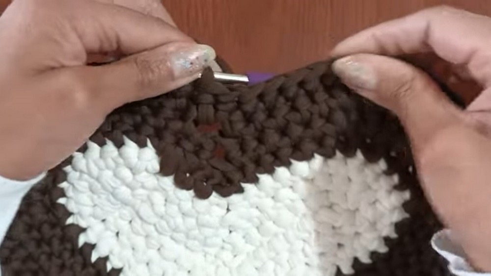 - Continue working single crochets around, following the same sequence: