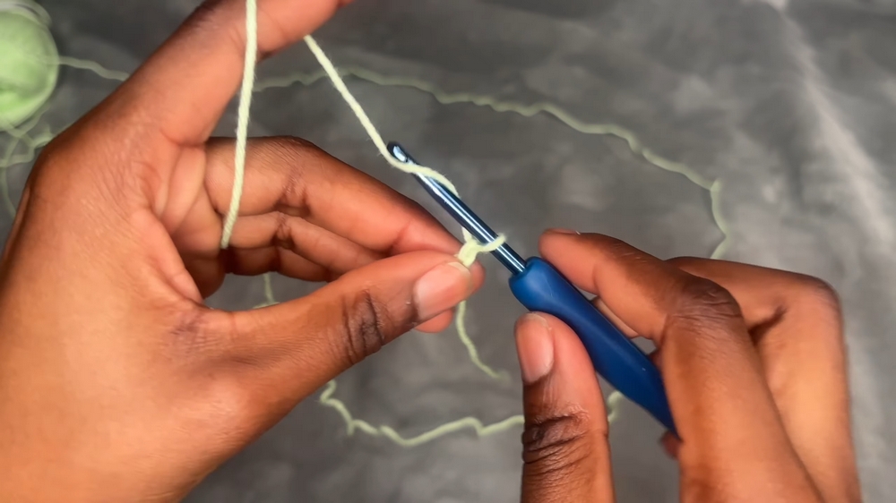 - Slip stitch into the last chain to form a loop, ensuring the yarn stays straight to avoid twisting your work.