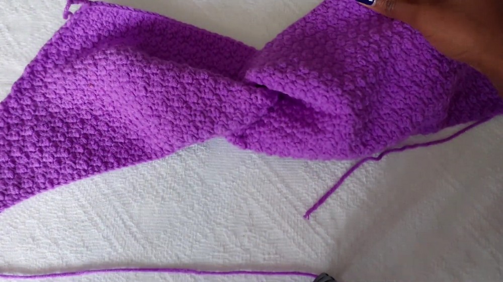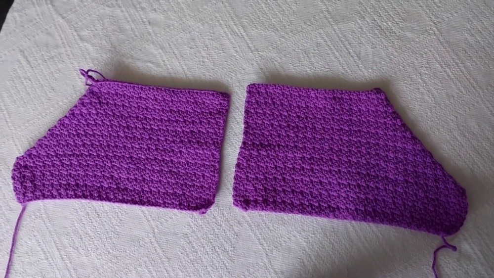 - Attach yarn to the bottom edge of the joined bra cups and side panels.