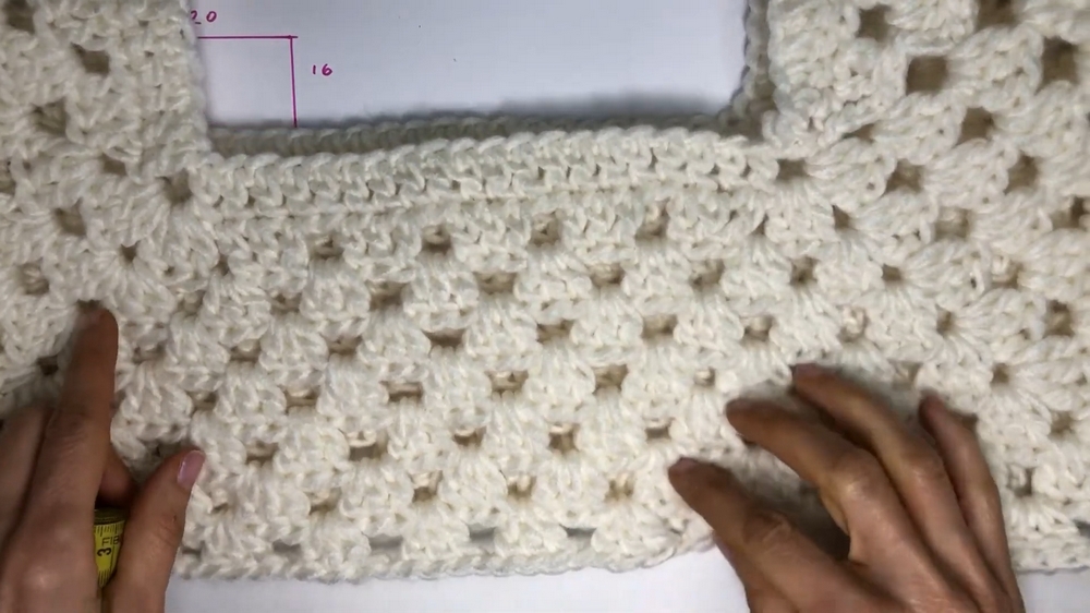 Always measure as you go to ensure the armhole fits comfortably.- Add or skip rows if necessary.