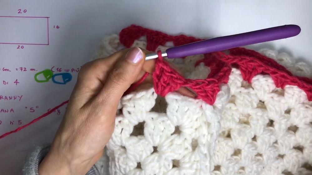- Crochet successive rows, maintaining the granny stitch pattern and increases at the corners.