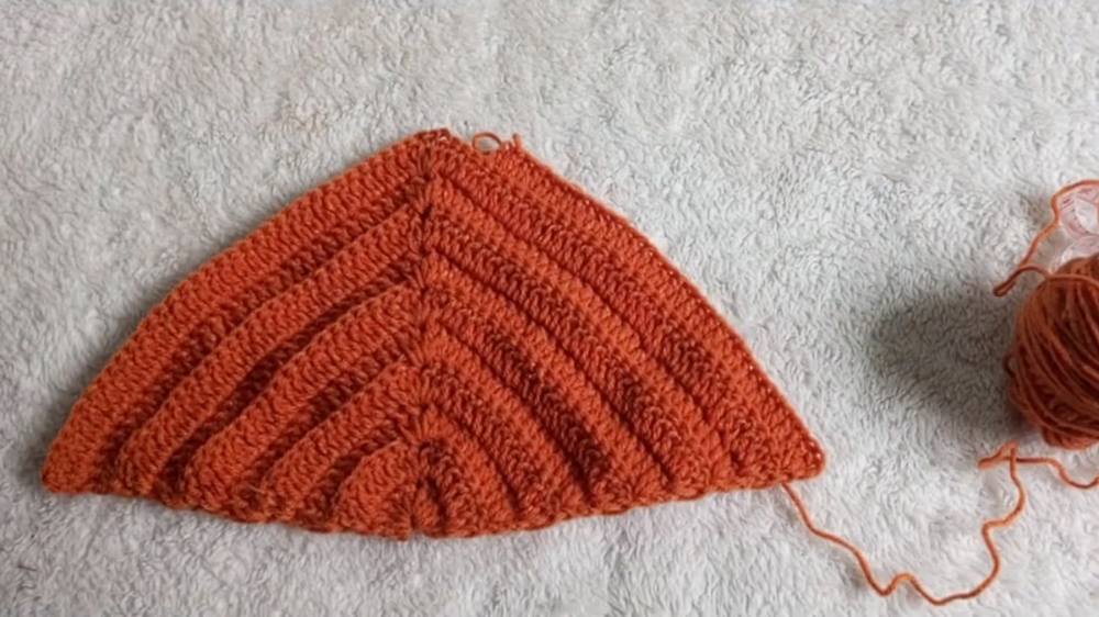 - Continue with double crochets in the back loops until you reach the chain one space at the middle of the triangle.