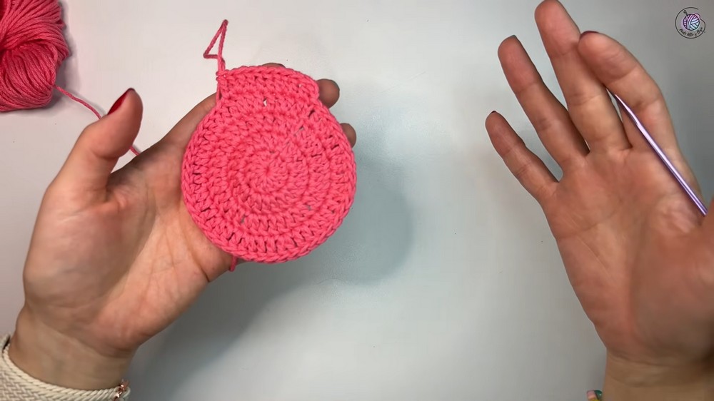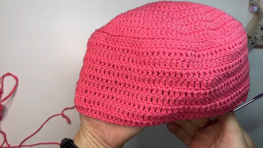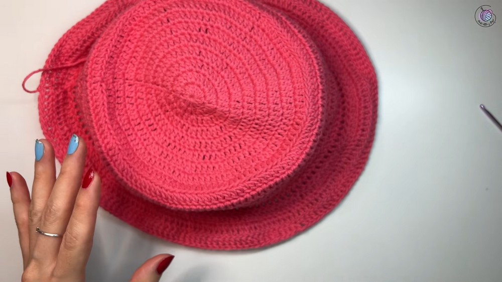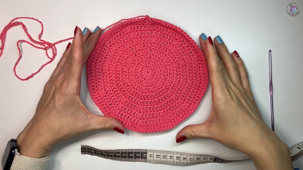 Stop once the diameter measures 18.5 cm for adult sizing. You may adjust for other sizes by stopping earlier or adding more increase rounds.