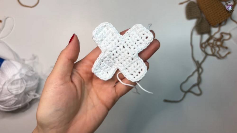 - Repeat to create 2 side arms for the "X". Sew or crochet them together into an X shape.