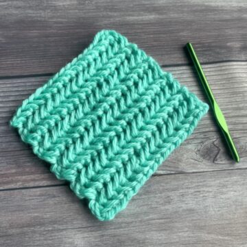 - Yarn over, insert the hook into the stitch, and pull up a loop (first take).