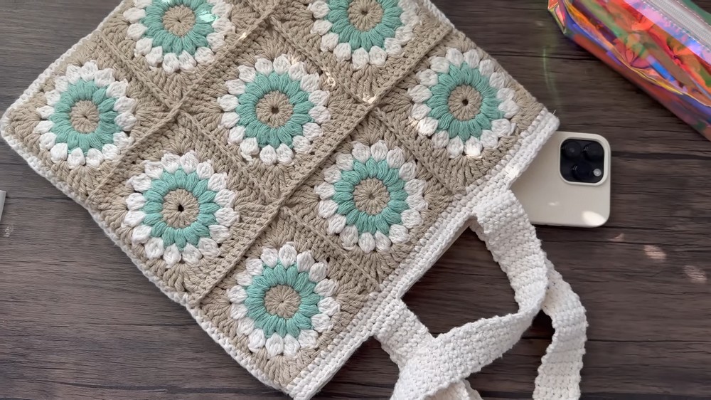- Granny Square Construction: The bag is made using granny squares of your choice. You can use any granny square design or follow a classic square pattern.