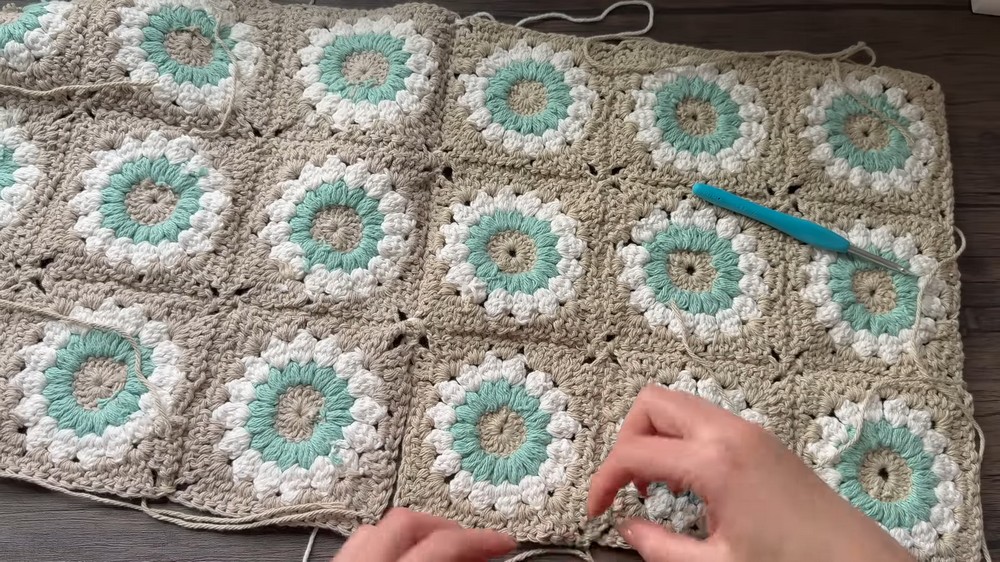 - Flat Join with Single Crochet (SC): Squares are joined using SC (instructions provided in the joining section).