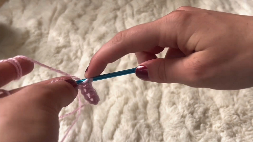 - Switch to Double Crochet (DC) for a decorative section: