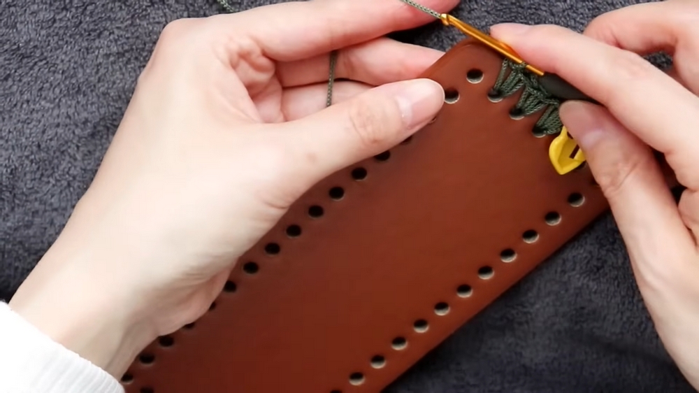 - Add chains to determine the depth of the bag. For this tutorial, the depth required 35 chains, but you can customize this based on preference.