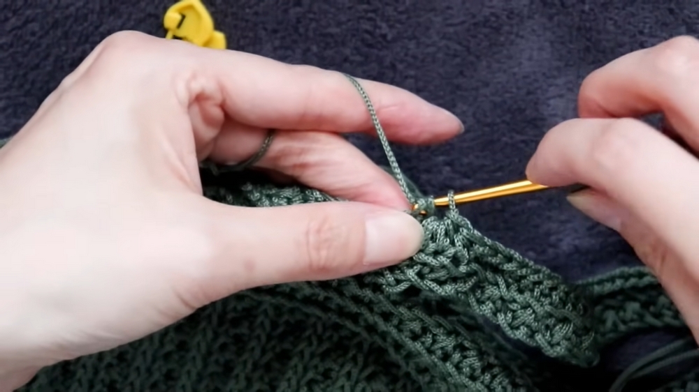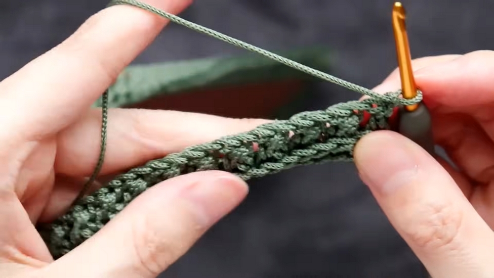 - Crochet evenly across the rows by alternating HDC (half double crochet) and slst (slip stitch).