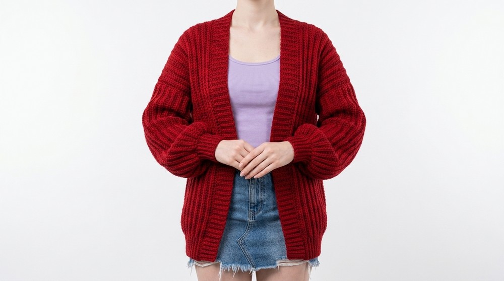 The cardigan stands out with its neat ribbing, delicate back-loop crochet details, and a flattering structure that fits comfortably. It’s versatile enough to wear on a chilly day or dress up for a casual outing. Practical and stylish, this project also allows for colorful customizations—you can choose to go bold or opt for soft, neutral tones.