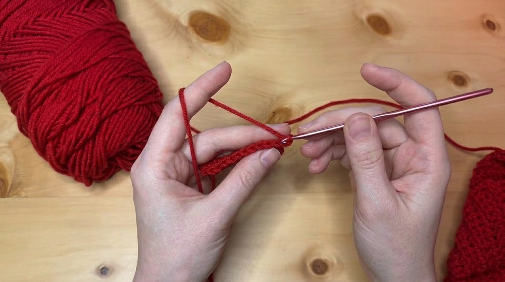 - Make sc into the second stitch from the hook. Continue working sc for the first 16 stitches.